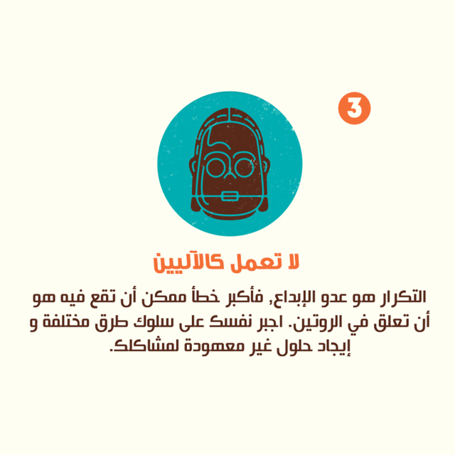 تكوين الأفكار الإبداعية يتطلب الكثير من الجهد لكن هذا لا يعني الانهماك في العمل لن يشمل ايجاد وقت للمرح , الاسترخاء و استكشاف المكونات الأساسية للإبداع. هنا يأتي دور هذا الإنفوجرافيك لتعريفك بالمفاتيح الأساسية لتجدد إبداعك.