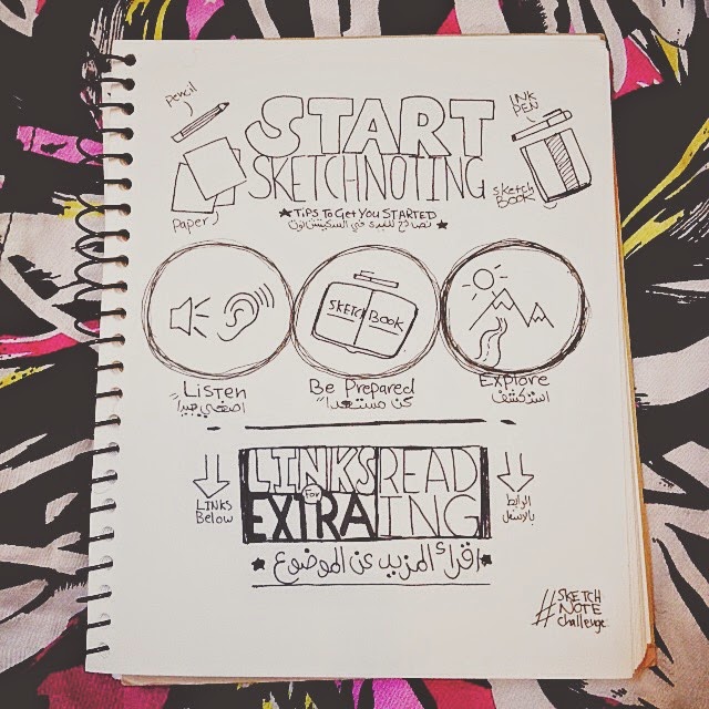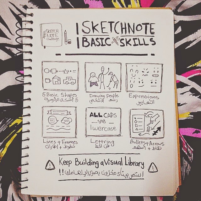 ذلك هو أنه مصطلح جديد ظهر قبل بضع سنوات من قبل مصمم UX/Ui اسمه مايك رود هو مزيج بين تدوين بالمعلومات باليد و الرسومات او السكتشات البسيطة التي تضور و تلتقط المعاني و المعلومات الرئيسية لحديث شخص ما او حدث ما . الهدف منها تمكنك من فهم واسترجاع المعلومة بأسلوب سهل و واضح . فهي عملية سهلة و سريعة و الكثير يقوم بها. في ماذا يمكنك استخدامها ؟ يمكنك عمل ملخصات لكتب او لفيديوهات شاهدتها. استخدامها لتدوين محاضراتك او دروسك .أو حتى لتلتقط أفكارك و تحفظها على الورق